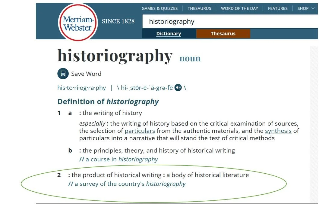 While “historiography” can mean “the writing of history,” or “the principles, theory, and history of historical writing,” nowadays historians more often use the term to refer to “the product of historical writing,” or “a body of historical literature.” In other words, the collected works written, whether in book or essay form, on a particular topic in history. This is sometimes also referred to as the “historical literature.” Thus, for example, there is a historiography on the origins of the First World War, another on the origins of the Mexican Revolution, another on the decision to drop the atom bomb on Hiroshima, another on the everyday lives of workers during the industrial revolution, and so forth. And, of course, there is also one on the origins of marijuana prohibition in the United States.